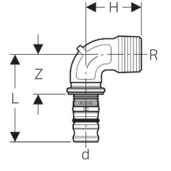 Geberit Mepla Übergangsbogen 90° mit Aussengewinde