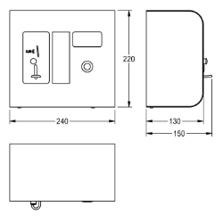 AQUAPAY Münzkontaktgeber für bezahlte Wasserabgabe zur Steuerung von 2 - 31 A3000 open Duscharmaturen. Display für Benutzerführung und Anzeige freier Duschplätze, Auswahl über Taster. Duschzeit pro Münze in Sekundenschritten bis 8 min einstellbar, voreingestellt auf 3 min. Automatische Duschzeitunterbrechung bei Nichtentnahme von Wasser. Stabiles Edelstahlgehäuse zur Wandmontage mit Sicherheitsschloss. Ausführung für Münzen EURO 0,50, 24 V DC. Abmessungen 240 x 220 x 130 mm (B x H x T)