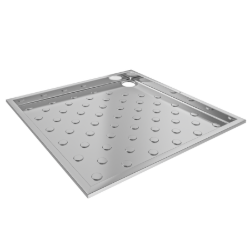 CAMPUS Duschwanne, zur flächenbündigen Montage, Chromnickelstahl, Oberfläche seidenmatt, Materialstärke 1,2 mm, Ecken verschweißt, mit rutschhemmendem Bodenprofil und Gefälle zum Ablauf, Ventilprägung 90 mm (D), Erdungslasche. Abmessungen 900 x 59 x 900 mm (B x H x T) Duschwannenablauf ist separat zu bestellen.