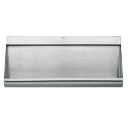 Reihenurinal für Wandmontage, Chromnickelstahl, Oberfläche seidenmatt, Materialstärke 1,0 mm, Wassereinlass von hinten, oben, oder seitlich mit G 1/2 B Verschraubung, inklusive Panzerschlauch zum Anschluss an verdecktes Stahlspülrohr, Rinne mit beiderseitiger Neigung zu mittigem gestanzten Siebablauf G 1 1/2 B, Siphon nicht inkludiert, inklusive Befestigungsset und Anschlusszubehör Wasseranschluss. Abmessungen 1200 x 515 x 235 mm (B x H x T)