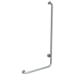 Winkelgriff 90° für Aufputzmontage, Chromnickelstahl, Oberfläche seidenmatt, Schliff mit rutschhemmender Wirkung, Rohrdurchmesser 32 mm, Wandstärke 1,2 mm, Wandabstand 82 mm, geprüft und zertifiziert (LGA), mit drei Edelstahl Rosetten für verdeckte Montage, inklusive Edelstahlschrauben und Dübel. Ausführung links Abmessungen 493 x 828 x 82 mm (B x H x T)