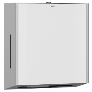 Papierhandtuchspender für Aufputzmontage, Chromnickelstahl, Oberfläche seidenmatt, Front weißes ESG-Glas, Gehäuse mit InoxPlus Oberf lächenveredelung zur Reduzierung von Fingerabdrücken und besseren Reinigungseigenschaft (easy to clean), Materialstärke 1,2 mm, seitliche Sichtfenster, Fassungsvermögen 300 - 400 Stück bei Papier mit Z-Faltung, inklusive Befestigungsmaterial. Abmessungen 300 x 325 x 120 mm (B x H x T)