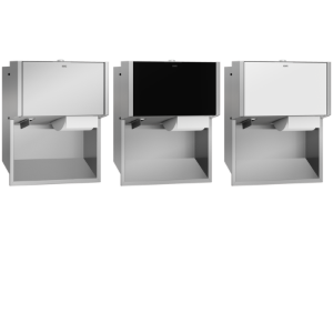 WC-Doppelrollenhalter mit Spindelsystem für Unterputzmontage, Chromnickelstahl, Oberfläche seidenmatt mit InoxPlus Oberflächenverede lung zur Reduzierung von Fingerabdrücken und besseren Reinigungseigenschaft (easy to clean), Materialstärke 1,2 mm, geschlossenes Gehäuse, Zylinderschloss mit KWC Einheitsschlüssel, für zwei Rollen bis maximal 120 mm (D), Freigabe der nicht sichtbaren Reserverolle nach Verbrauch der ersten Rolle, inklusive Befestigungsmaterial. Abmessungen 284 x 350 x 147 mm (B x H x T)