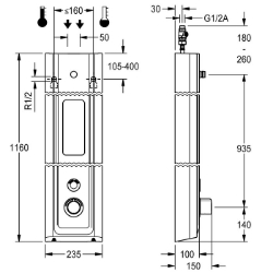 F5E-Therm Duschpaneel aus Mineralwerkstoff für Aufputzmontage mit Thermostatbatterie und Anschlussstutzen für Duschkopf. Elektronisch gesteuert, zum Anschluss an Warm- und Kaltwasser. Funktionsblock mit integrierter Magnetventilkartusche, Thermostat und Vorrichtung für optionale Bypass-Magnetventilkartusche zur Durchführung einer programmgesteuerten thermischen Desinfektion. Thermostat mit Metallgriff mit einstellbarem und verdrehsicherem Temperaturanschlag und Möglichkeit zur Durchführung einer manuellen thermischen Desinfektion. Ganzmetallausführung, sichtbare Teile poliert verchromt. Anschlussstutzen für separat notwendigen KWC-Duschkopf DN 15 mit v ormontiertem Durchflussmengenregler 9,0 l/min. Gehäuse mit erhabener Funktionsfläche und fugenlos eingeformter Duschgelablage, aus kunstharzgebundenem Mineralwerkstoff MIRANIT, mit porenfreier, glatter Oberfläche (temperaturbeständig bis 80 °C), Farbton Alpinweiß. Tast-Sensor inklusive Steuerelektronik mit Start/Stopp-Funktion und Reinigungsabschaltung. Anschlussschläuche mit absperrbaren Wass ermengenregulierungen mit Rückflussverhinderer und Sieb. Aktivierte Hygienespülung 24 Stunden nach letzter Betätigung und Speicherung von Statistikdaten. Mit Möglichkeit der Parametrierung und Kommunikation über optionale bidirektionale Fernbedienung. Wahlweise für Batteriebetrieb mit 6 V Lithium Batterie (CR-P2) je Armatur oder separate Spannungsversorgung über Netzteil 6,75 V / 12 V DC oder AQUA 3000 open Systemzubehör. Gehäuseabmessung 235 x 1160 x 100 mm (B x H x T) Duschkopf sowie Batteriefach inklusive Batterie oder Netzteil zuzüglich Verlängerungskabel müssen separat bestellt werden.