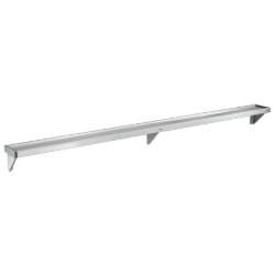 Ablage, für Wandmontage, Chromnickelstahl, Oberfläche seidenmatt, Materialstärke 1,0 mm, Konsolen mit Ablage verschweißt, seitliche Abschlüsse mit verschraubten grauen Kunststoffteilen, inklusive Befestigungsmaterial. Ab der Länge von 1800 mm ist eine zusätzliche Konsole im Lieferumfang enthalten. Abmessungen 1800 x 138 x142 mm (B x H x T)