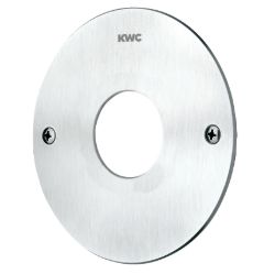 Edelstahlabdeckplatte rund, Durchmesser 136 mm, für verchromte Sensoraufnahme, mit Schrauben und Dübeln, für bauseitige Schalterdose.