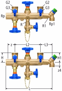 Rp Rp1 R R1 G2 G3 z z4 L L2 L3 H H1 Kvs Grösse Art.-Nr. VE suissetec