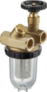mit schnellschließendem Absperrventil, Rückflußverhinderer, Befestigungswinkel, Gehäuse und Überwurfmutter aus Messing, mit doppelter O-Ring-Abdichtung, Filtertasse Cellidor.