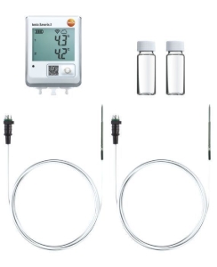 Bei diesem testo Saveris 2 Set haben Sie den Vorteil, dass das Set passend für die Anwendung im Kühlschrank zusammengestellt ist. Neben dem Funk-Datenlogger (und Zugang zur Testo-Cloud) erhalten Sie zwei Temperaturfühler mit spezieller Flachbandleitung, die sich hervorragend durch die Kühlschrankdichtung schieben lässt. (So verbleibt der Fühler im Innern des Kühlschranks und der Funk-Datenlogger außerhalb.)