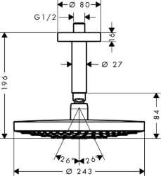 HANSGROHE Raindance Select S 240 2jet Kopfbrause mit Deckenanschluss 100 mm, 26467000