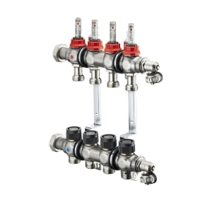 OVENTROP-„Multidis SF“ Edelstahl-Verteilerfür Flächenheizungs- und Kühlsysteme, mit thermostatisierbaren Ventileinsätzen M 30 x 1,5 und integrierten Durchfluss- Mess- und -Reguliereinsätzen 0-5 l/min., vormontiert.bestehend aus:Vorlaufbalken aus Edelstahl (1.4301) mit integrierten Durchfluss- Mess- und -Reguliereinsätzen (0-5 l/min)- mit Einschraubstutzen, vernickelt, mit G ¾ Außengewind EANschluss nach DIN EN 16313 Eurokonus für Oventrop Klemmringverschraubungen- mit G 1 Innengewinde zum direkten Anschließen eines flachdichtenden Kugelhahnes- Füll- und Entleerungshahn mit drehbarem Anschluss für Schlaucherschraubung DN15- mit Blindstopfen G ¾, vernickeltRücklaufbalken aus Edelstahl (1.4301) mit Ventileinsätzen M 30 x 1,5- mit Einschraubstutzen, vernickelt, mit G ¾ Außengewind EANschluss nach DIN EN 16313 Eurokonus für Oventrop Klemmringverschraubungen- mit G 1 Innengewinde zum direkten Anschließen eines flachdichtenden Kugelhahnes- Füll- und Entleerungshahn mit drehbarem Anschluss für Schlaucherschraubung DN15- mit Blindstopfen G ¾, vernickeltVerteilerhalterungen aus verzinktem Stahl liegen bei, zur Befestigung des Verteilers im Einbauschrank oder auf der Wand. Die Schalldämmung der Rohrschellen entspricht DIN 4109, Schallschutz im Hochbau.Material: Edelstahlmax. Betriebsdruck: 6 barmax. Betriebstemperatur: 80 °C Art.-Nr.: 1405360 EAN: 4026755437737