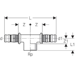 Geberit Mepla T-Stück mit Innengewinde, DN 50 / 25 / 50, d 63 mm, Art.-Nr. 607.363.00.5