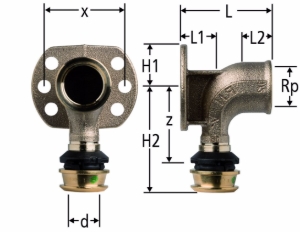 | Rp | d | z | L | L1 | L2 | H1 | H2 | x | ζ | Grösse | Art.-Nr. | VE | suissetec |